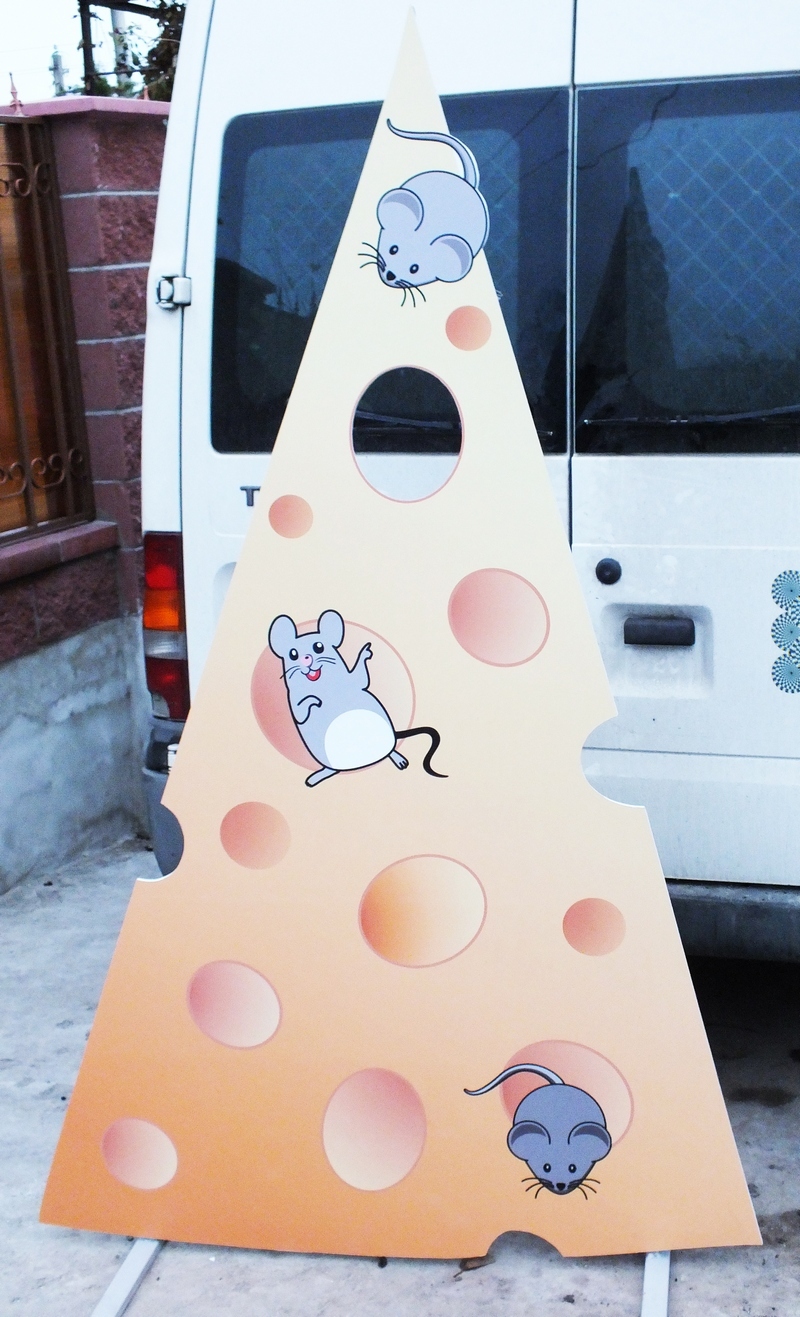 - Типа конструкции (штендер, роллап, ростовая фигура)